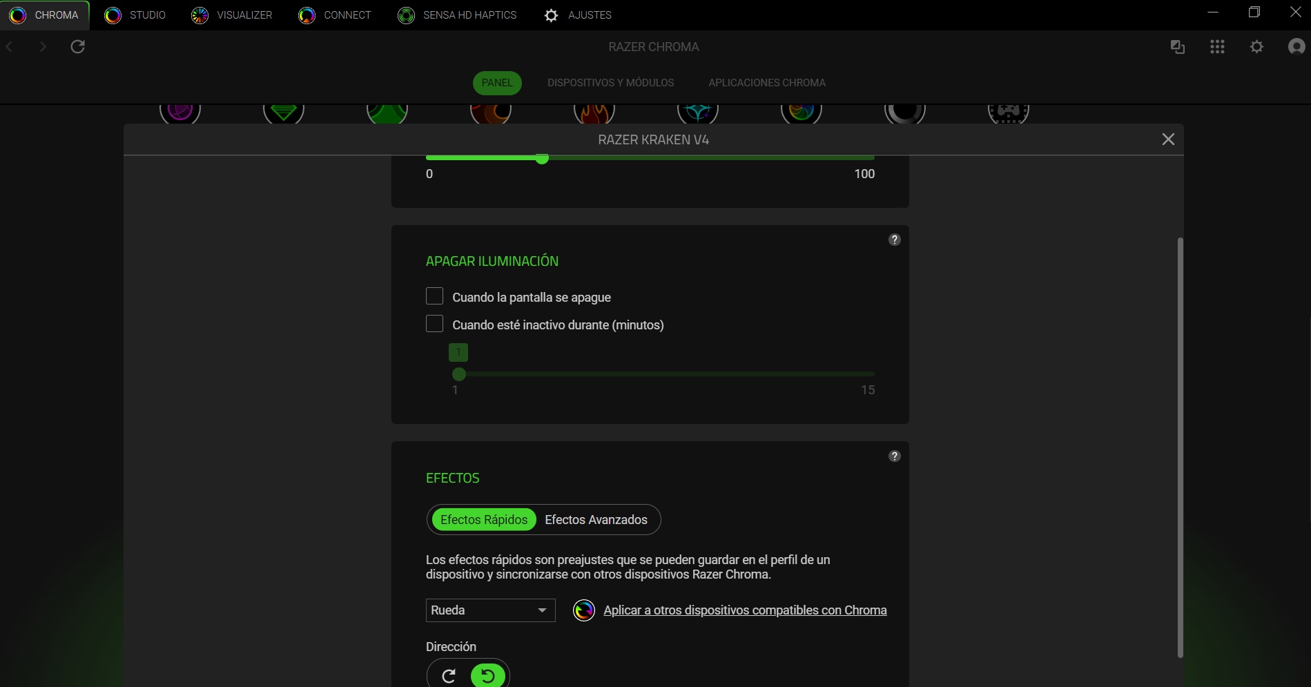 - Dentro de Razer Synapse, busca la sección de «Iluminación Chroma» o un nombre similar.