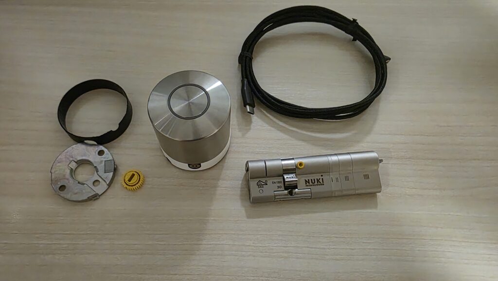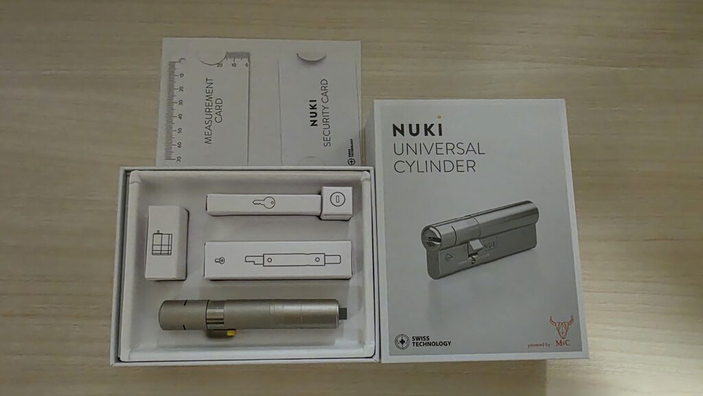 El package es muy bonito en clores blancos con un carton de calidad donde llega todo protegido donde viene el nuevo cilindro de seguridad Nuki Universal Cylinder, cilindro de cierre para Nuki Smart Lock, Clase de seguridad máxima SKG***, Con función de emergencia y peligro, Juego de 5 llaves, accesorio para cerraduras electrónicas que ya no tendras que comprar por separado de la marca Swiss Technology que es lider de seguridad. vien con tres llaves y todo lo necesario para adptarlo a tu cerradura. Tambien vien la sintrucciones con código Qr la trajeta de seguridad un regla para medir el bobín existente, el camble de carga y la cerradura Nuki.