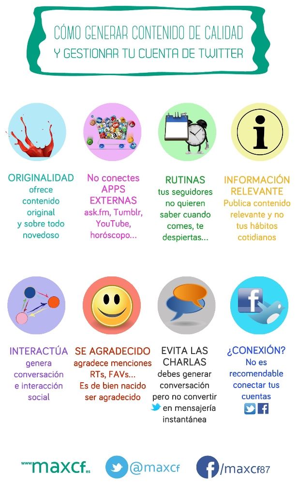 Seguir las siguientes pautas nos ayudarán a tener más seguidores. 8 claves para generar contenido de calidad en Twitter: