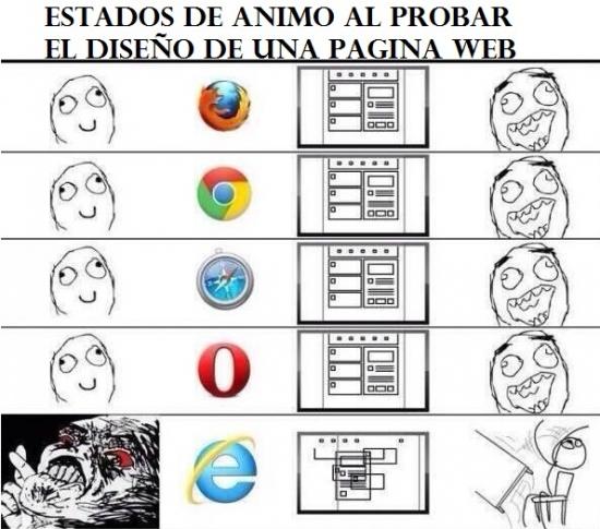 Los diseñadores y maquetadores web, sufren de cambios de estado cuando tiene que probar y hacer funcionar bien una página Web con Internet Explorer. Hoy por hoy una web se debe ver bien con Explorer 8 o superior. Por fín podemos descartar el Internet Explorer 7 por el poco trafico que genera que es inderior al 1%.