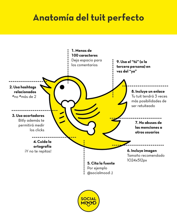 Una imagen vale más que mil palabras. Os dejamos una infografía. La anatomía del tuit perfecto. ¿Qué es un tuit? ¿Cómo hacer un tuit perfecto?