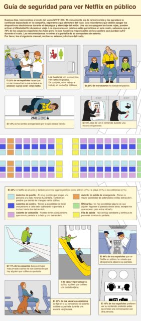 Madrid. En un mundo con 2.400 millones de usuarios de smartphone1, cada vez es más habitual encontrar a personas que ven sus series favoritas en sus dispositivos móviles y en cualquier lugar. Sobre todo, en el caso de España, el país de Europa donde más nos gusta disfrutar de nuestras series y películas favoritas fuera de casa. Según revela un reciente estudio de Netflix, un 78% de sus usuarios españoles ha visto series o películas en público en el último año. Los lugares donde más se ve Netflix en público son aeropuertos y aviones (48%), trenes (47%), autobuses (42%), cafeterías y restaurantes (41%) y la playa (31%).