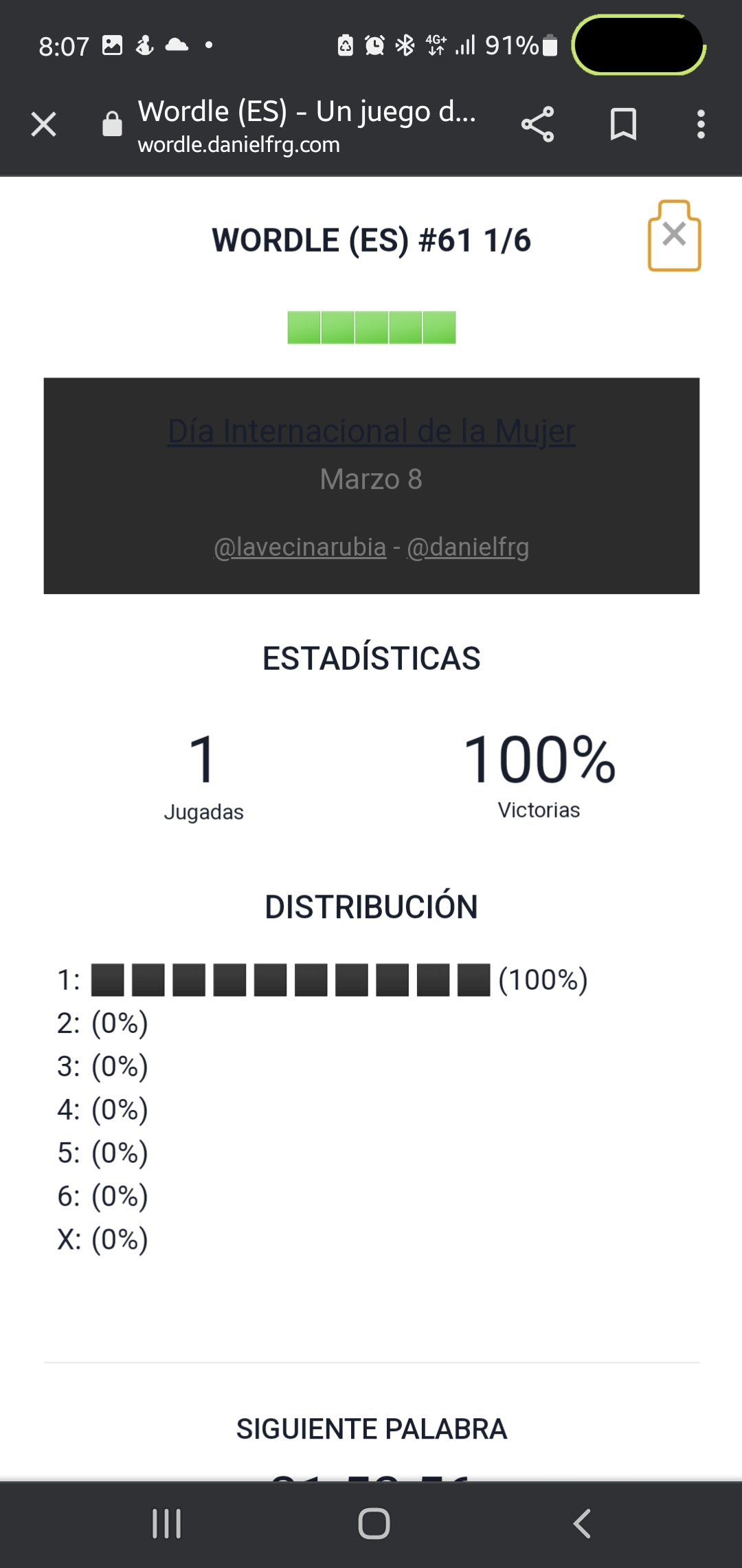 Llegamos al martes y, como viene siendo habitual en nuestras rutinas, Wordle nos da los buenos días. Este juego sencillo y gratuito nos ofrece hoy el reto número 61 desde que empezó su andadura en España y nos invita a continuar esta semana de invierno adivinando la palabra del día. Sin más dilación, vamos con la solución del reto de hoy, 8 de marzo de 2022. Hoy celebra el día de la mujer con la palabra muy relacionada.