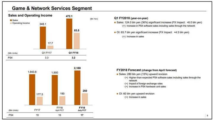 En el apartado puramente económico la división de juegos de Sony registró unos ingresos de 3.611 millones de euros, un aumento interanual del 24 % que se explica por las excepcionales ventas de software, y un beneficio antes de impuestos de 83.500 millones de yenes (638,7 millones de euros). En total, durante el pasado trimestre Sony registró unos ingresos de 1.953.000 millones de yenes (14.943 millones de euros) y un beneficio antes de impuestos de 195.300 millones de yenes (1.500 millones de euros). Un incremento del 5 % y 24 %, respectivamente.