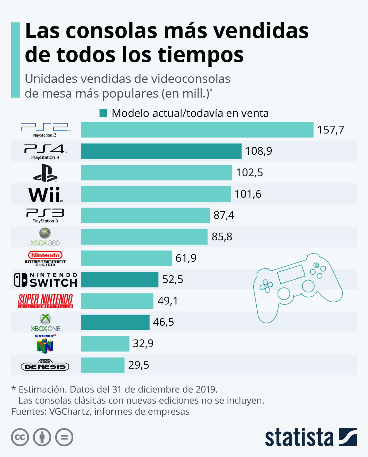 20 años de PlayStation 2. Los 10 mejores juegos. Hoy se cumplen 20 años desde que Sony puso a la venta su consola PlayStation 2 (PS2), la segunda versión de su dispositivo de videojuegos de sobremesa, que en la actualidad es la consola de este tipo más vendida de la historia, con más de 155 millones de unidades.