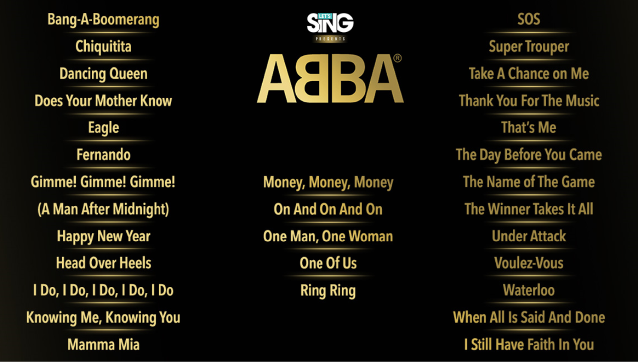Puedes jugar solo o coger a algunos amigos para empezar tu fiesta de karaoke. Cuando todo esté dicho y hecho, nos gustaría daros las gracias por la música y esperamos que disfrutéis de la experiencia que supone Let’s Sing Presents ABBA.