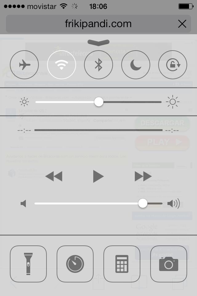 Si hay una novedad que es un punto muy diferencial de iOS 7 frente a anteriores versiones es el nuevo Centro de Control. Ahora es algo realmente útil para establecer el brillo, volumen, controlar la reproducción multimedia, los modos y conexiones y hasta el temporizador, acceder a la cámara y a las funciones AirPlay. Sólo tienes que deslizar el dedo de abajo a arriba en el escritorio o pantalla de bloqueo y accederás a él. Útil para desactivar el Wi-Fi, Bluetooth, encender el flash como linterna, la cámara o incluso la calculadora.