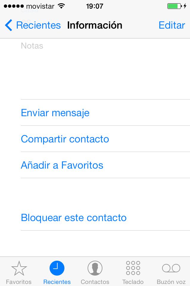 Por otra parte, también es posible con iOS 7 bloquear esos contactos que tenemos pero no queremos que nos llamen. Hasta ahora había que hablar, habitualmente, con el operador o utilizar una aplicación externa. En iOS 7 sólo hay que llegar al final de cada ficha de contacto para encontrar la opción Bloquear este contacto.