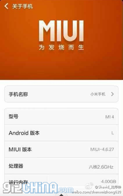 El Xiaomi Mi4 vendrá con el sistema operativo Android L, con su personalización MIUI de Xiaomi. Y además dispondrá de conectividad LTE, lo que haría más sencillo que diera el salto al mercado europeo.