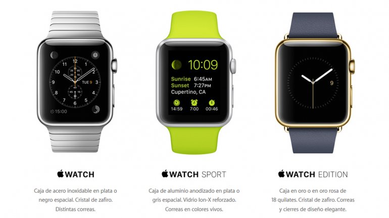 * Modelos: Apple Watch, Apple Watch Sport y Apple Watch Edition con oro de 18 kilates