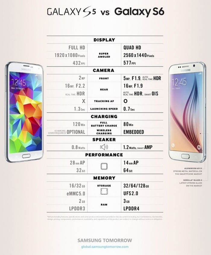 Samsung Galaxy S5 vs Samsung Galaxy S6 infografía