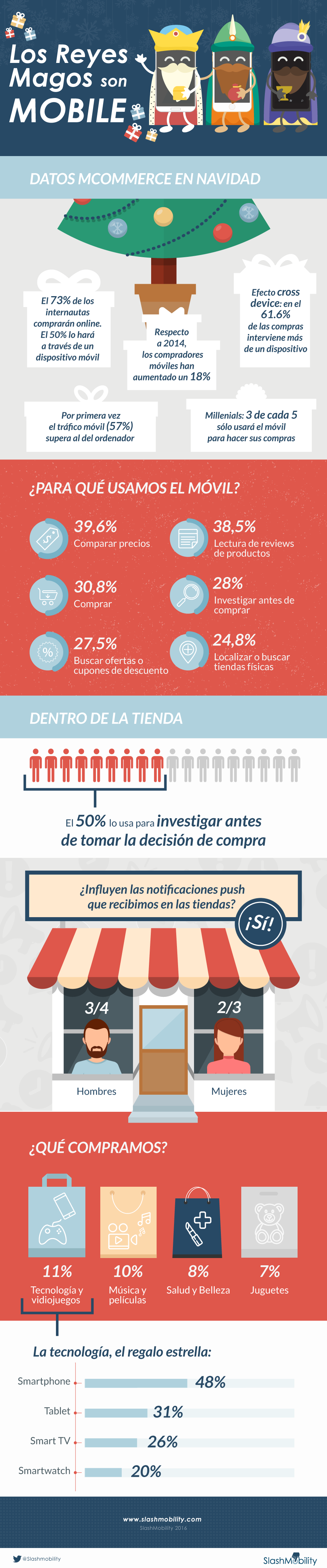 Así, en SlashMobility han analizado en una infografía cómo hemos utilizado el móvil para hacer nuestras compras navideñas. En primer lugar, cabe destacar dos datos del sector mCommerce en Navidad: