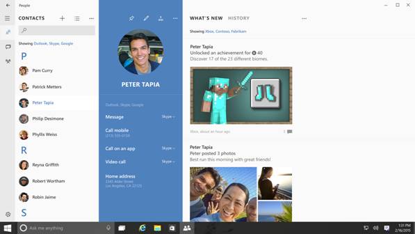 La incorporación en Windows 10 permitirá que los usuarios de Skype estén en contacto en cualquier momento, ya que la libreta de contactos del teléfono y email permite contactar con ellos vía Skype independientemente del sistema operativo que usen.