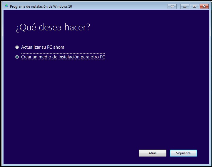 Ejecuta la herramienta de creación de medios. Donde seguiremos unos pasos.