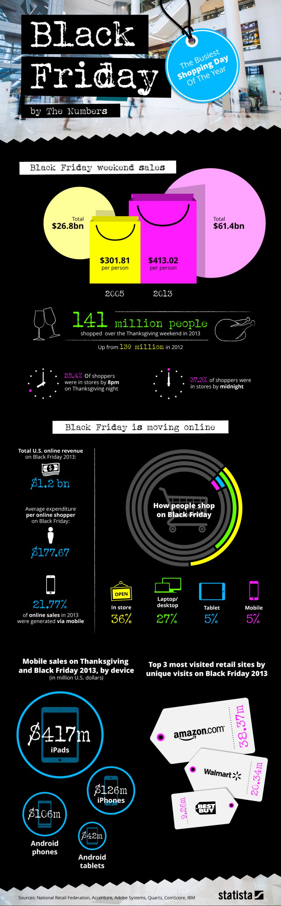 Os dejamos una infografía del Black Friday y sus números en los Estados Unidos. En España tiendas online como Amazon, Rakuten, El Corte Ingles, Media Markt tienen descuentos para hoy. Poco a poco llega esta tradición americana a España que nos ayuda a comprar para Navidad.